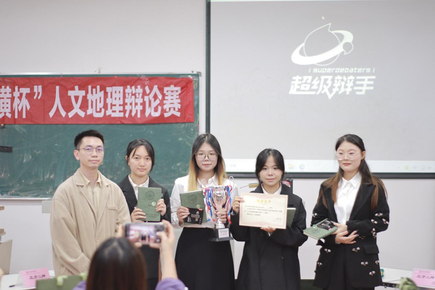第一届“纵横杯”人文地理辩论赛,冠军队伍为来自药学院的“啊对对队”。亚军为来自城规学院、公治学院、信工学院的辩手组成的队伍“什么档次和我一队”