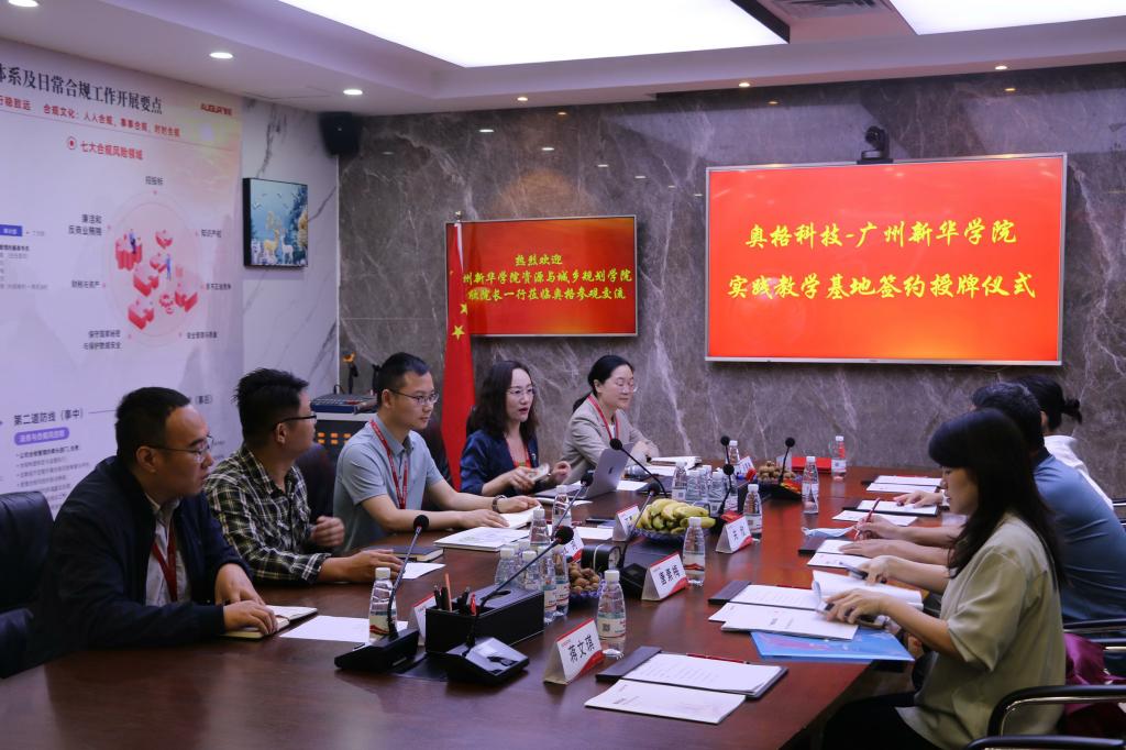 接着,双方就实习时间安排、实习要求、课程设置及双方后续的合作事宜等内容进行了交流。关欣院长对奥格科技股份有限公司为学生提供优质的实践培养平台表示感谢,并希望公司能及时反馈学生在实习过程中的不足,以及对我院各专业人才培养方案的修订和专业课程的设置提出宝贵意见,同时期待今后双方在其他领域开展更深度的交流与合作。
