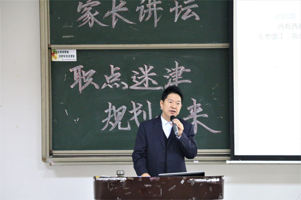 陈主任致辞后,王庭槐校长为两位家长颁发了家长讲坛荣誉证书,并向两位主讲家长和策划组织家长讲坛的老师以及工作人员表示衷心的感谢。王校长发言道,家长讲坛实际上就是将学校和社会、学校和家庭联系起来的教学模式。希望家长讲坛能拉近家长和同学们的距离,也希望各位同学能够通过家长讲坛了解家长们的工作环境,学习经验。同时呼吁有更多的家长能够走进学校、走上讲坛,为家校合作育人多贡献一份力量。