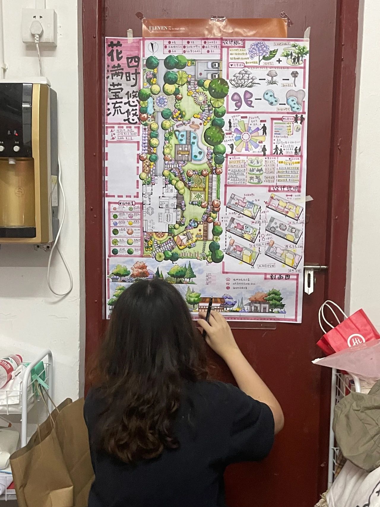 记得初入设计教室时,我的图纸上总浮着稚嫩的笔触,是老师在评图时用红笔圈住我比例失衡的景观,轻轻推过一本《园冶》,“先读懂古人的呼吸,再落下自己的心跳”。记得植物学老师带着我们在暴雨初歇的校园里辨认植物,她挽起沾满雨渍的裤脚教会我们知识,传递“根系里的学问可比教科书上的图谱生动得多”的理念。当我的乡村规划方案卡在文化传承与现代化需求的矛盾中,正是设计老师丰富的经验和真诚的教学,让传统文化在图纸上获得了当代转译。这些温暖而坚定的托举,让我在构建理想人居的蓝图上,既有破土而出的锐气,亦保持着对土地与生命的谦卑。