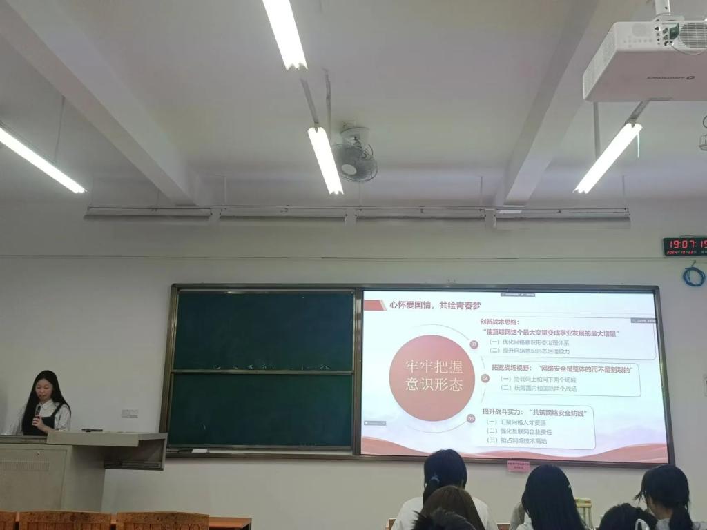 在金秋十月,丹桂飘香的美好时节,为深入学习贯彻习近平新时代中国特色社会主义思想,发挥党员的示范引领作用;同时,进一步激发同学们的爱国情怀与青春梦想,传承城规学子“传、帮、带”的优良传统。2024年10月22日19:00-20:00,一场主题为《心怀爱国情,共绘青春梦》的党员进团支部分享会在定静1C202教室隆重召开。本次班会由学生党员冯凯淇同志与李春晖同志担任主讲,2024级人文地理与城乡规划团支部的全体同学齐聚一堂,共同参与这场思想的盛宴。