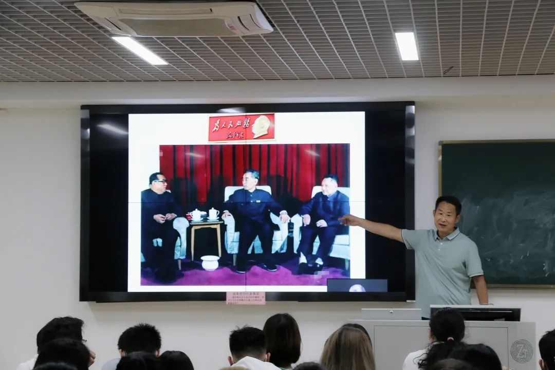 他带领与会人员共同学习毛泽东同志的《为人民服务》一文,并向同学们指出:党的宗旨说到底就是为人民服务,这也正是不忘初心、牢记使命的集中体现。这五个大字贯穿了党的百年历史,激励着我们党永远坚守初心,砥砺前行。随后他与同学们分享了周恩来、焦裕禄等为人民服务的故事,希望同学们学习先辈们的无私奉献精神。最后,他结合中美两国对疫情防控的不同态度与抗疫结果,揭示了两国不同制度的本质区别,从而彰显了我国社会主义制度的优越性,并对此次课程做出总结,表示同学们要立足本职,学好本领,德智体美劳全面发展,争做社会主义建设者与接班人。